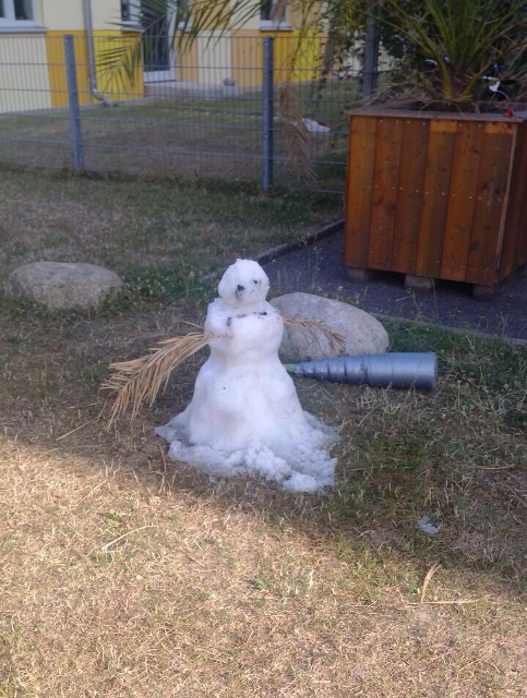 einen Schneemann aus echtem Schnee aufzustellen. Und der hat es trotz