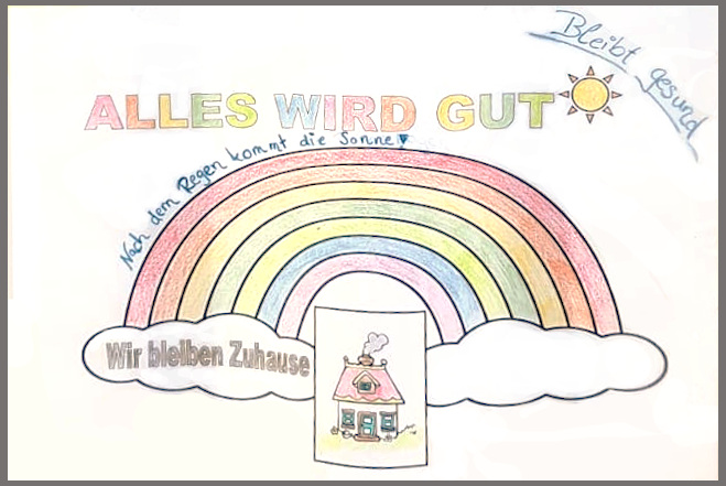 Auch wenn wir alle grade mehr oder weniger schwierige Zeiten durchleben. Wir lassen uns die Hoffnung nicht nehmen. Dafür stehen wir ja schon mit unserem Namen. Und so sehen es offenbar auch die Schüler, die dieses Bild gemalt haben.